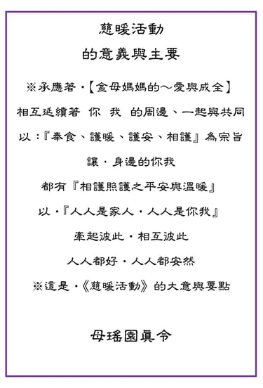 以愛為本 以成全為行 凝聚慈工 普照世間