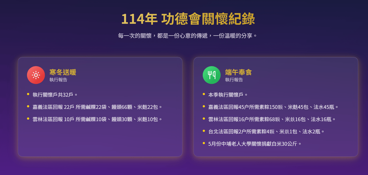 以愛為本 以成全為行 凝聚慈工 普照世間